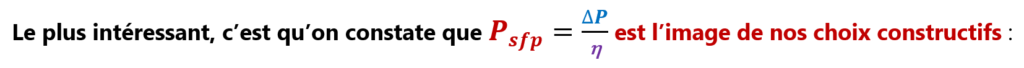 En réalité, pour une même valeur de Psfp (en rouge) à respecter, la Perte de charge (en bleu) peut être plus élevée, si le Rendement (violet) est meilleur.