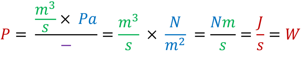 Certains fabricants d’appareils expriment le Psfp sous la forme J/m3, ce qui est peu parlant pour l’utilisation courante, mais reste cohérent du point de vue des unités, comme vu ci-dessus, et correspond finalement aux mêmes chiffres que ceux exprimés en W/(m3/s).
